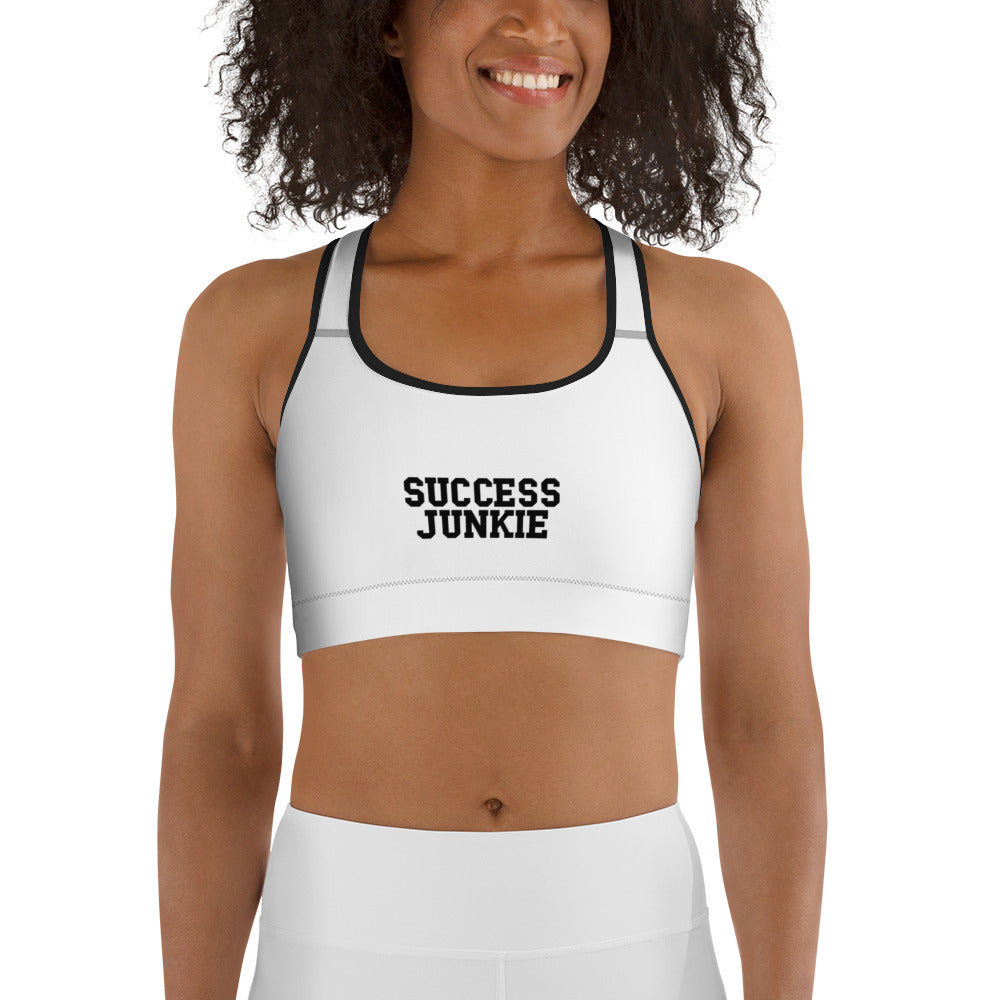 This gorgeous Success Junkie sports bra is made from moisture-wicking material that stays dry during low and medium intensity workouts. The bra has support material in the shoulder straps, double layer front, and a wide elastic band to ensure constant support.